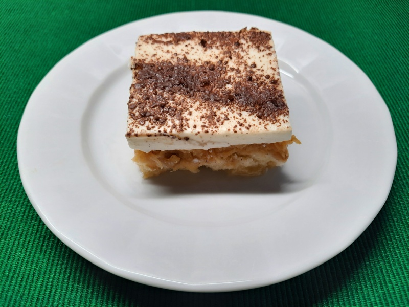 Koláč je tvořen třemi vrstvami. Těsto, jablka a poleva.