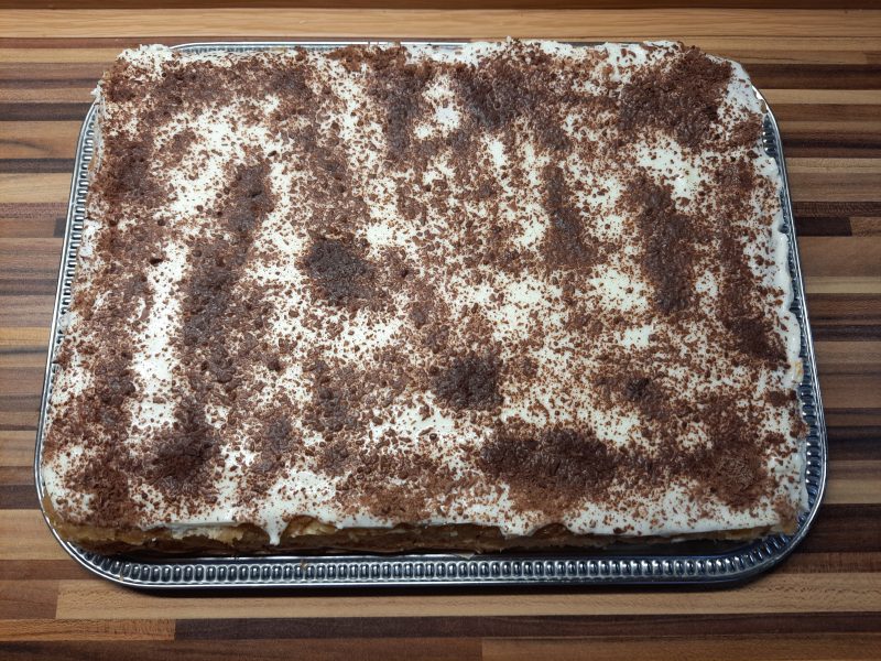 Krém jsem nalila na jablečnou vrstvu a posypala nastrouhanou čokoládou.