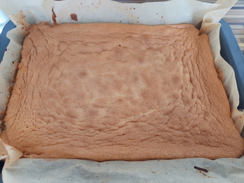 Koláč musíme nechat dobře vychladnout. Po upečení je povrch krásně hladký, chladnutím se ale zvrásní.