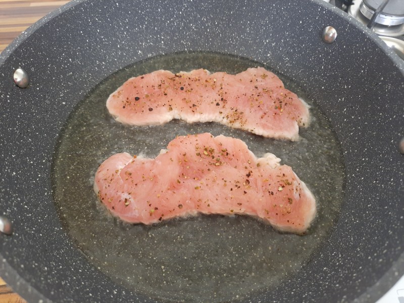 Na rozpáleném oleji osmažíme plátky z obou stran.