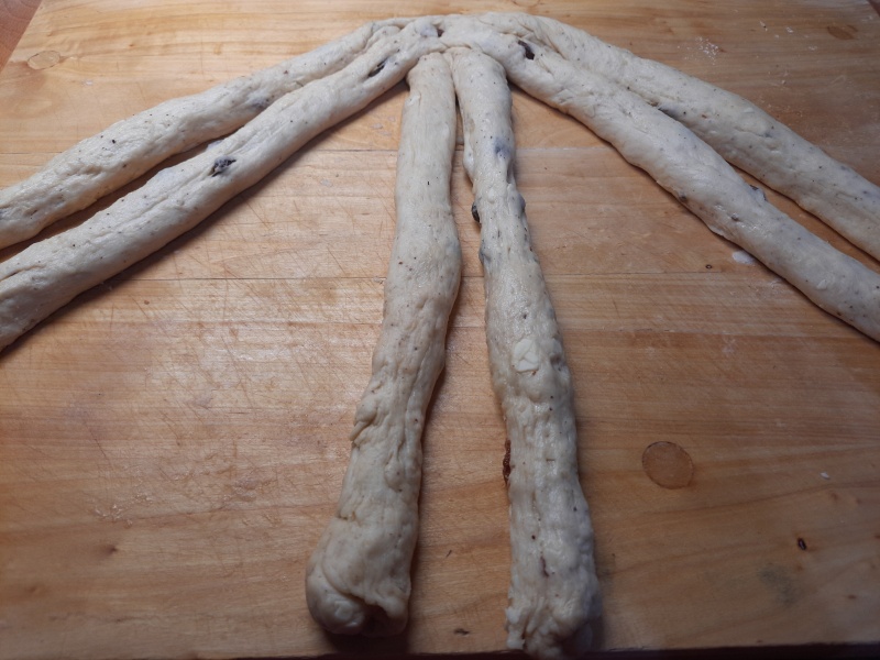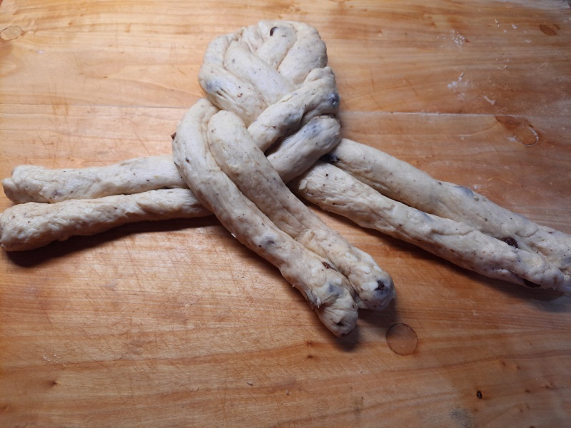 Mazanec pleteme obvyklým způsobem ze třech zdvojených pramenů.