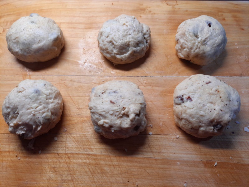 Teď je zapotřebí rozdělit těsto na 6 kousků. Použila jsem k tomu váhu. Udělala jsem si 6 stejně těžkých kuliček.