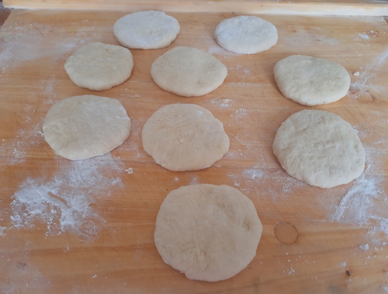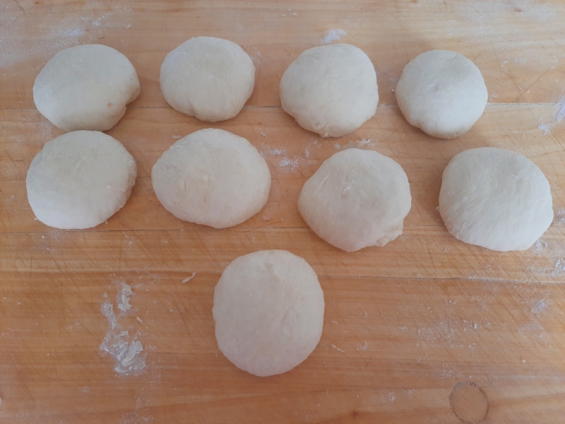 Z těsta jsem vypracovala váleček, který jsem rozdělila na 9 dílů, ze kterých jsem uválela bochánky.