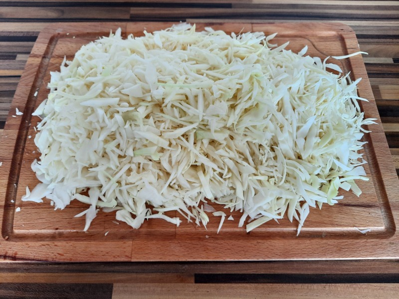 Pak jsem si nakrájela 1/2 hlávky zelí najemno. Když zbyde, dá se z něj udělat zelný salát.