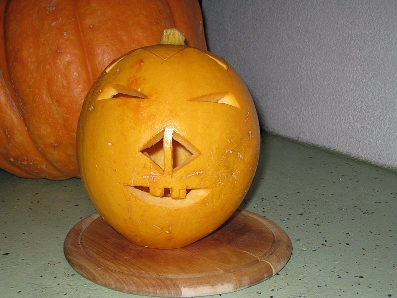 Jednou jsem vypěstovala na zahradě také větší dýně a syn jednu vydlabal.