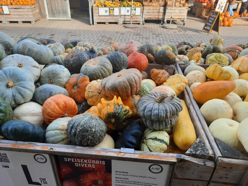 Původně jsem chtěla navštívit výstavu dýni v trojské botanické zahradě v Praze. Do Prahy jsem se sice nedostala, zato se mi podařilo navštívit dvě farmy Jucker nedaleko Curychu.