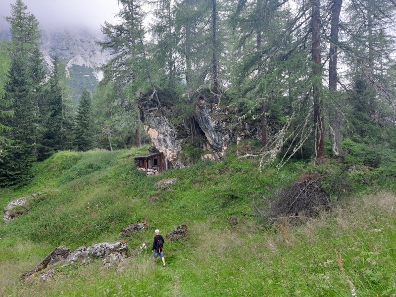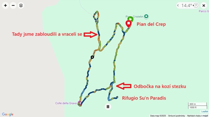 Po cestě se nám šlo tak pěkně, že jsme zapomněli odbočit na kozí stezku. Nebylo to ale na škodu. Dorazili jsme k horské restauraci Rifugio Su’n Paradis v nadmořské výšce 1850 m. Tam jsme se občerstvili pivkem a vraceli se na kozí stezku.