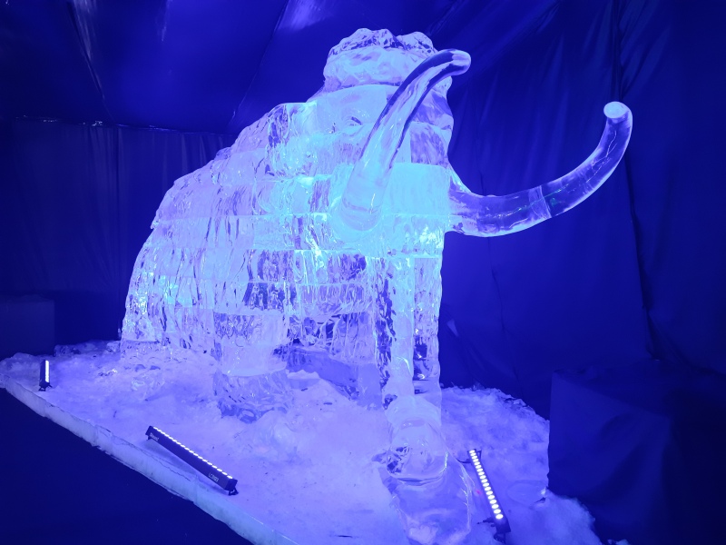 V kontejneru na nás čekalo 20 ledových soch z pravěku. Z toho bylo 8 v životní velikosti. Na sochy se spotřebovalo 100 tun ledu. Jak jsme se od zaměstnance muzea dozvěděli, přivezli je sem po částech a ty na místě skládali a mrazili do sebe.