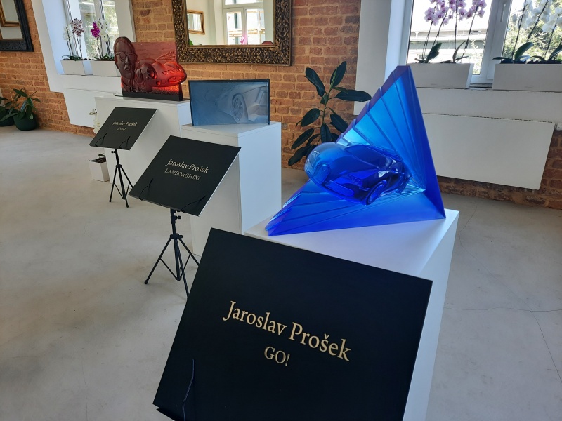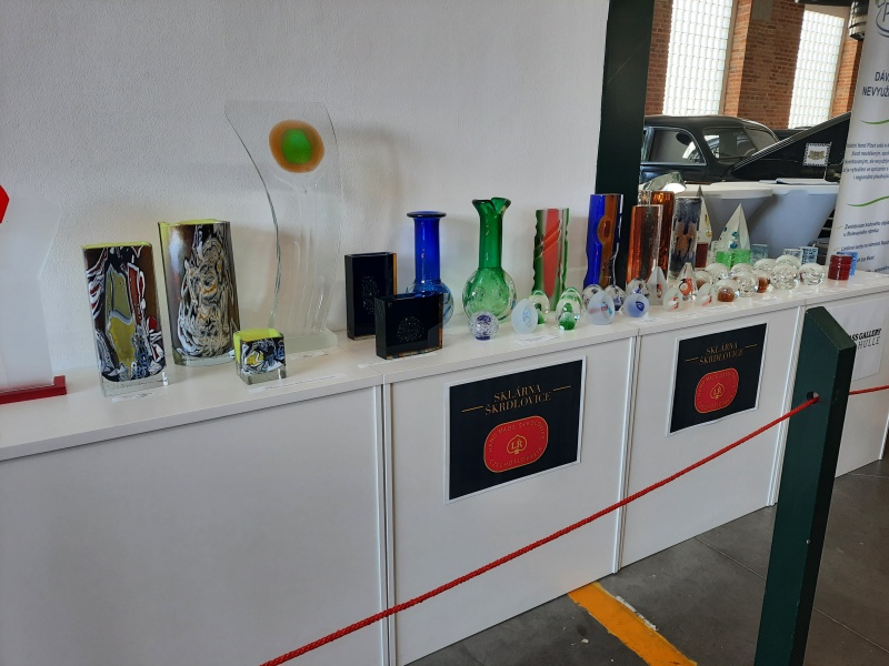 Prostory mezi motorkami vyplňovaly skleněné výtvory pana Proška a Beránka.