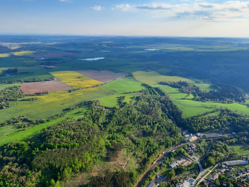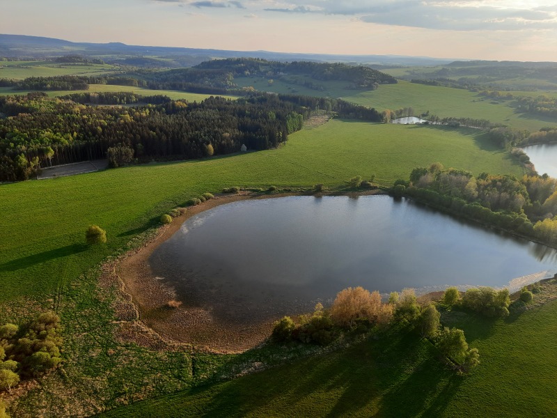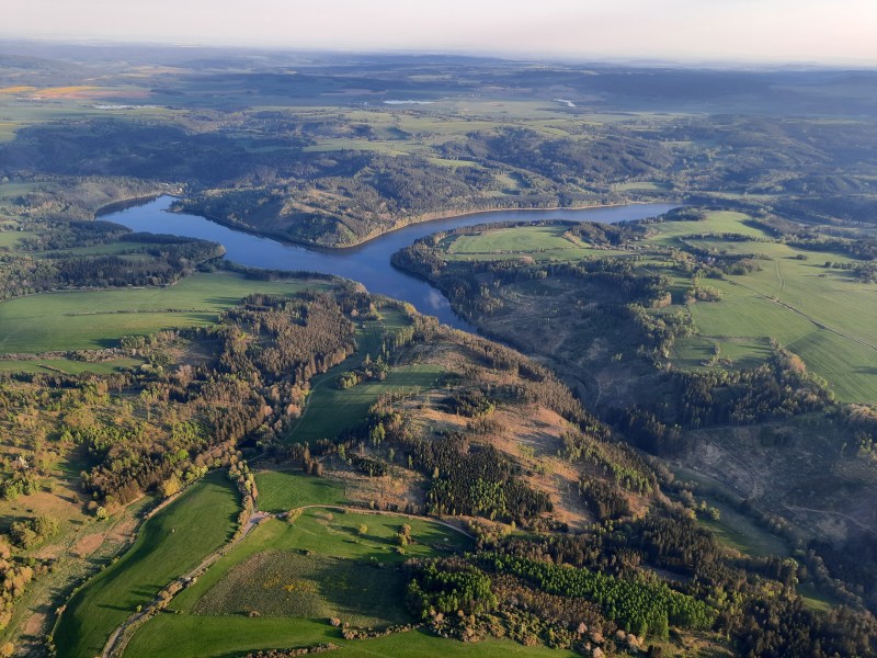 Vystoupali jsme do výšky asi 800 m, ale tam vzduch moc neproudil. Téměř jsme se nepohybovali. Pilot sestoupal do asi 600 m a hned to bylo lepší. Letěli jsme nad poli, pastvinami, lesy,… viděli jsme Žlutice, Žlutickou vodní nádrž a mnoho rybníků. Lidé dole vypadali jako malé figurky.