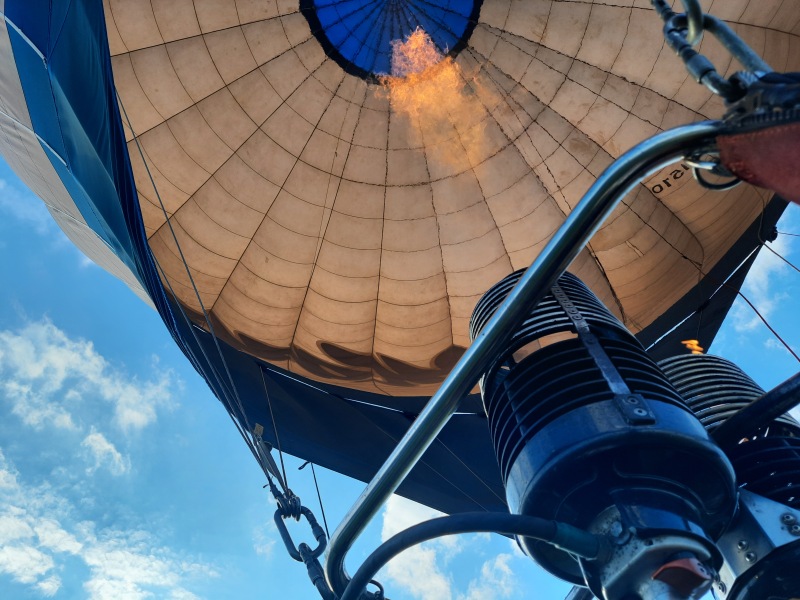 Když se vzduch v balónu trochu ochladil a začali jsme klesat, tak nám pilot trochu přitopil.