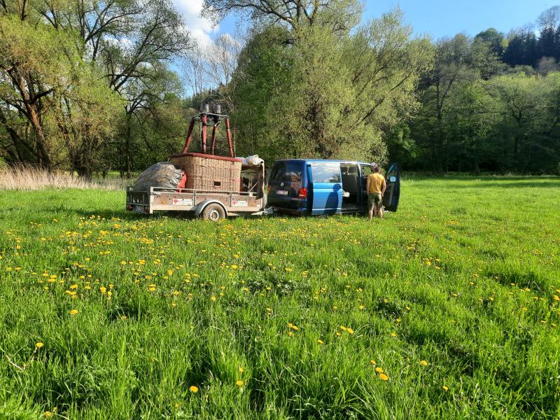 Na louku po našem přistání dorazili oni dva pomocníci s dodávkou a po sbalení balónu nás odvezli k autu. Poděkovali jsme, rozloučili se a vyrazili k domovu.