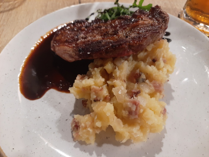 Vyrazili jsme vyzkoušet místní restauraci. Dali jsme si lososa se špenátovými brambory. Jídlo bylo moc dobré. K tomu pivko z místního pivovaru. Co si víc přát?